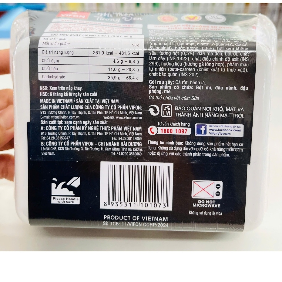 +  Mì trộn tương đen Vifon khay 90g tiện lợi lại vô cùng hấp dẫn là lựa chọn hoàn hảo cho những bữa ăn vội vàng nhưng vẫn đủ chất