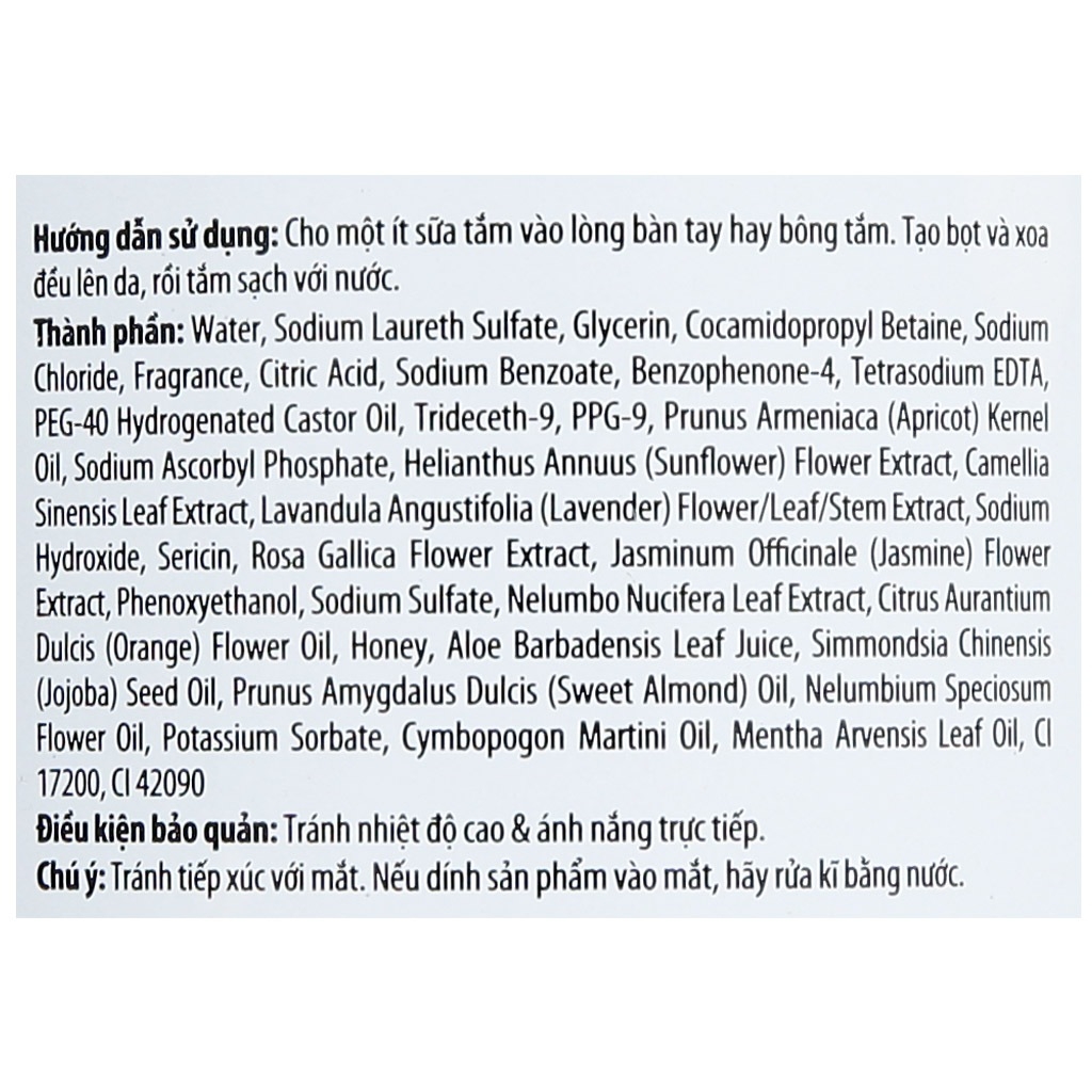 + Sữa tắm chứa vitamin C và 100% chiết xuất từ thiên nhiên giúp làn da căng bóng mịn màn vấn vương hương nước hoa ngọt ngào